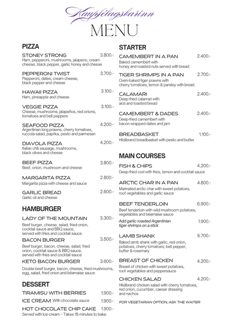 It is located on the main floor of Hildibrand Hotel and serves dinner. Kaupfélagsbarinn offers a great variety of traditional bistro food – with our own twist!